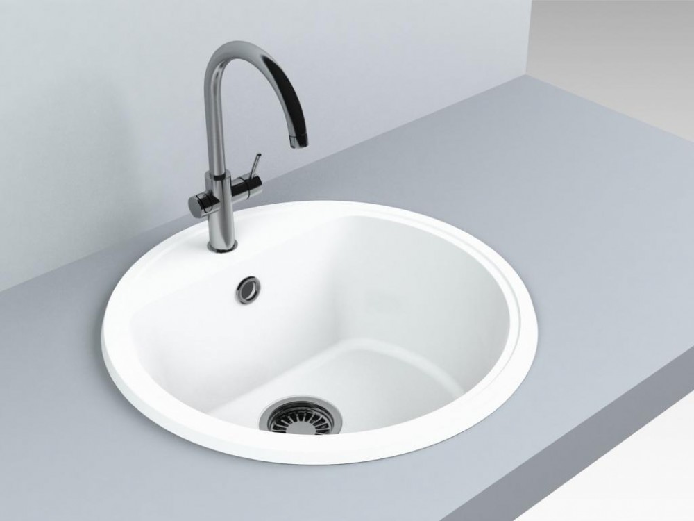 1) Мийка для кухні кругла Буль-Буль Malibu врізна Маграніт білий