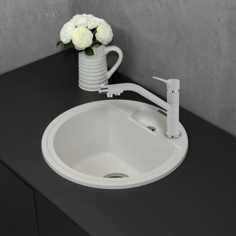 Мийка для кухні кругла Буль-Буль Valencia врізна Маграніт білий