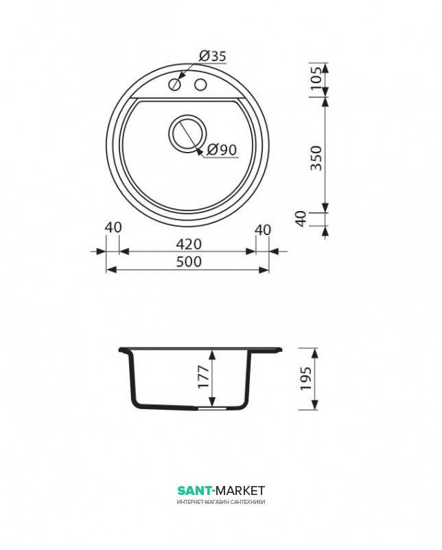 Мийка для кухні кругла Marmorin Tanat врізна штучний камінь чорний 270 803 002