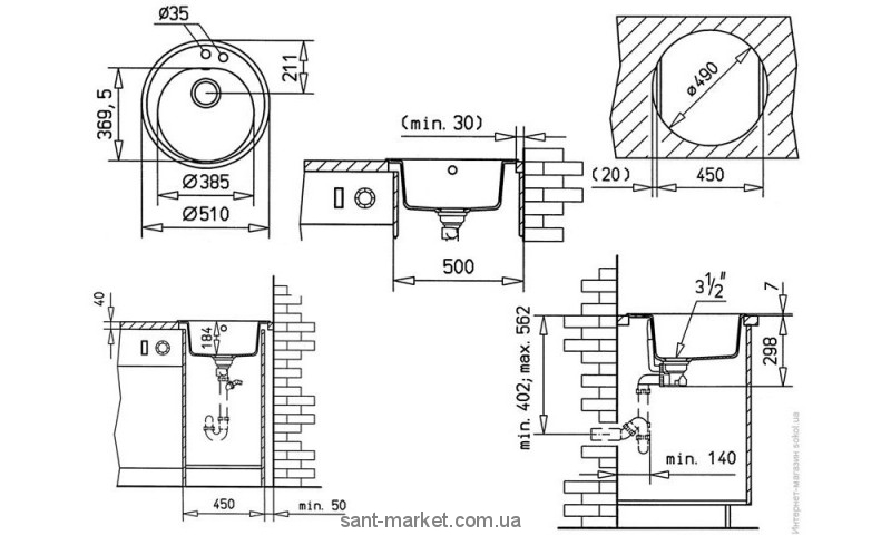 Мийка для кухні кругла TEKA CENTROVAL 45 TG врізна граніт карбон 40143216