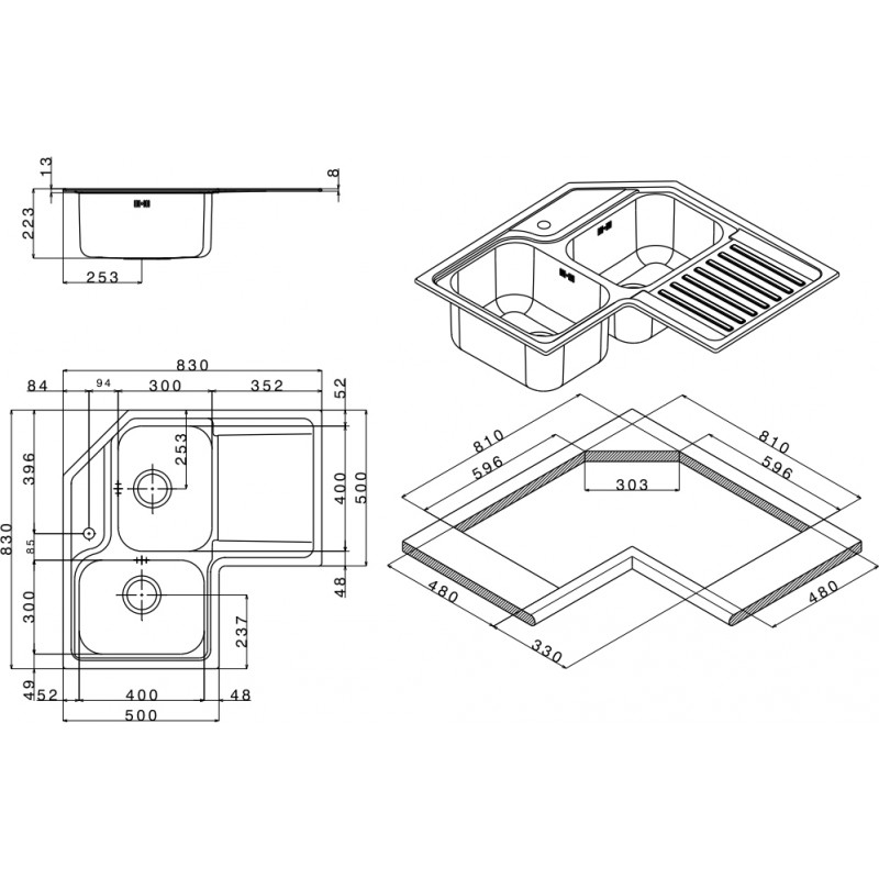 - Розміри мийки (ШхГхВ): 830x830x500 мм