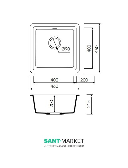 Мийка для кухні квадратна Marmorin Fado 1k врізна штучний камінь чорний 426 100 002