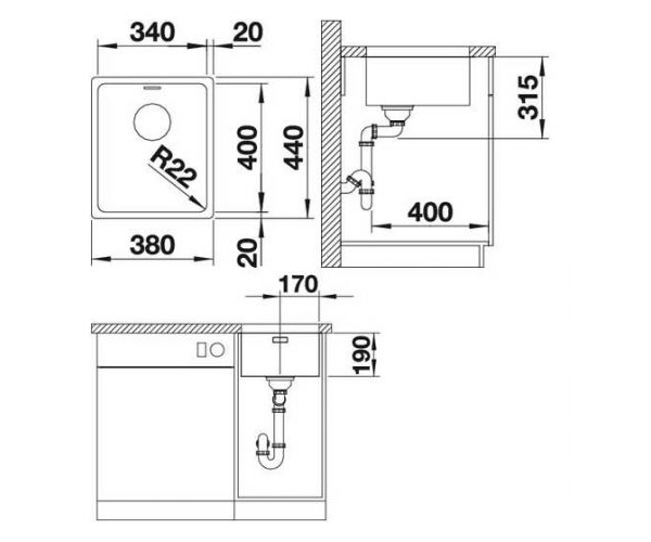 Мийка для монтажу під стільницю Blanco Andano 340-Uнержавіюча сталь із дзеркальним поліруванням. Без клапан-автомат. Поєднання елегантності та функціональності.
