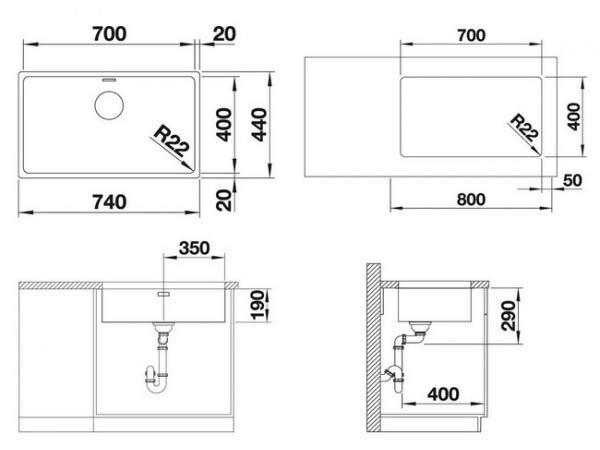 Мийка для кухні прямокутна Blanco Andano 700-U нержавіюча сталь дзеркальна поліровка 522971