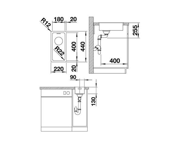 Мийка для кухні прямокутна Blanco Andano 180-IF нержавіюча сталь дзеркальна поліровка +522951