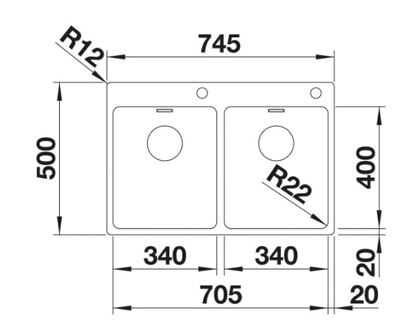 Мийка для кухні прямокутна Blanco Andano 340/340-IF-А нержавіюча сталь дзеркальна поліровка 522997