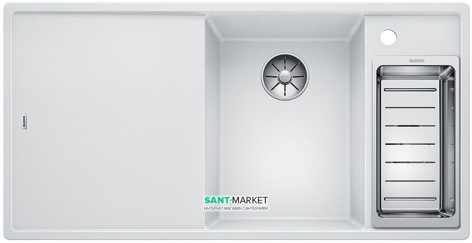 Мийка для кухні прямокутна BLANCO Axia III 6S SILGRANIT врізна з клапаном-автоматом білий 523466