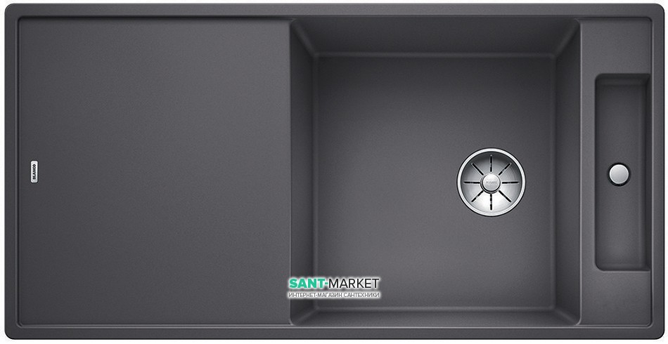 Мийка для кухні прямокутна BLANCO Axia III XL 6S SILGRANIT врізна з клапаном-автоматом темна скеля 523501