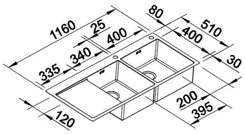 1) Мийка для кухні прямокутна BLANCO CLARON 8 S-IF / А