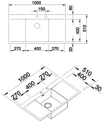 1) Мийка для кухні прямокутна BLANCO FLOW 45 S-IF