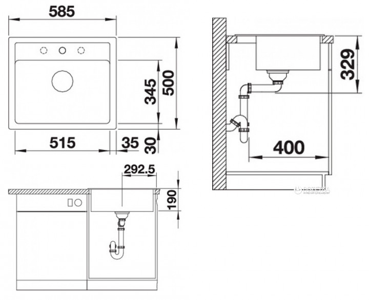Представлена модель прямокутного, врізного кухонного миття серії Legra 6 від Blanco виготовлена з матеріалу SILGRANIT і оснащена відвідною арматурою з кошиковим вентилем 3 1/ 2". Мийка оснащується отвором для змішувача і має містку чашу розміром 51.5 х 34.5 х 19 см.