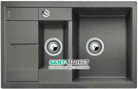 Мийка для кухні прямокутна BLANCO METRA 6 S COMPACT SILGRANIT врізна з клапаном-автоматом алюметаллик 513553