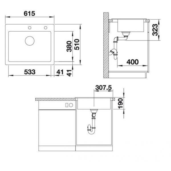 Мийка Blanco Palona 6 являє собою глибоку, містку чашу для посуду, обрамлену по периметру плоским кантом. Для монтажу змішувача передбачений широкий майданчик, на якому можна розмістити додаткові аксесуари. Поверхня миття несприйнятлива доокропу, можна складати в чашу гарячі сковороди, не дряпається і втрачає кольору під впливом сонячних променів. Глибини чаші миття достатньо для великої кількості посуду, миття встановлюється в стільницю врізним способом.