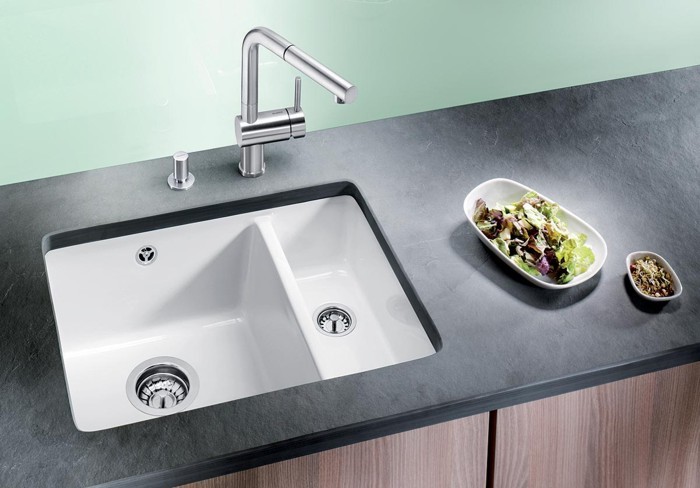 Мийка Blanco SUBLINE 340/160-U з основною чашею, розташованою зліва, виконана зі стійкого композитного матеріалу SILGRANIT. Призначений для індивідуального планування функціональної робочої зони. Оптимальне використання робочого простору досягається за рахунок максимальної місткості чаш, а також додаткових функціональних аксесуарів, які купуються окремо. Модель оснащена новою відвідноюарматурою InFino з кошиковим вентилем, простий у догляді та експлуатації.