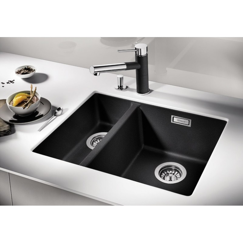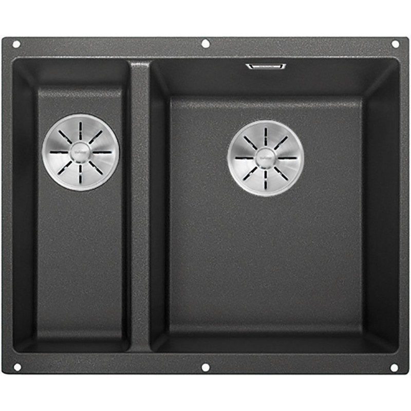 Мийка для монтажу під стільницю BLANCO SUBLINE 340/160-U (чаша праворуч) антрацит з відвідною арматурою InFino®