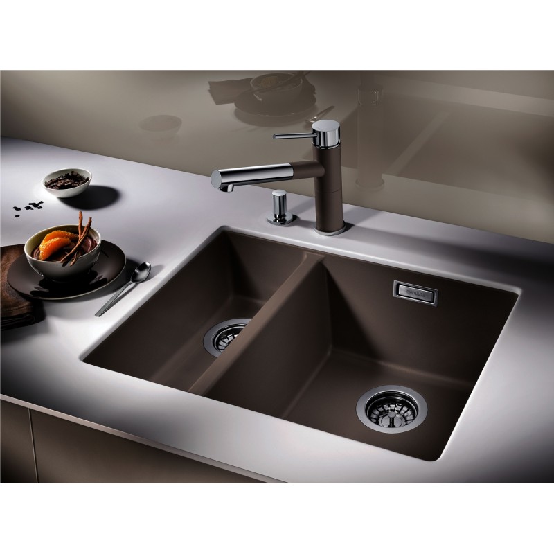 Мийка для монтажу під стільницю BLANCO SUBLINE 340/160-U (чаша праворуч) кава з відвідною арматурою InFino®