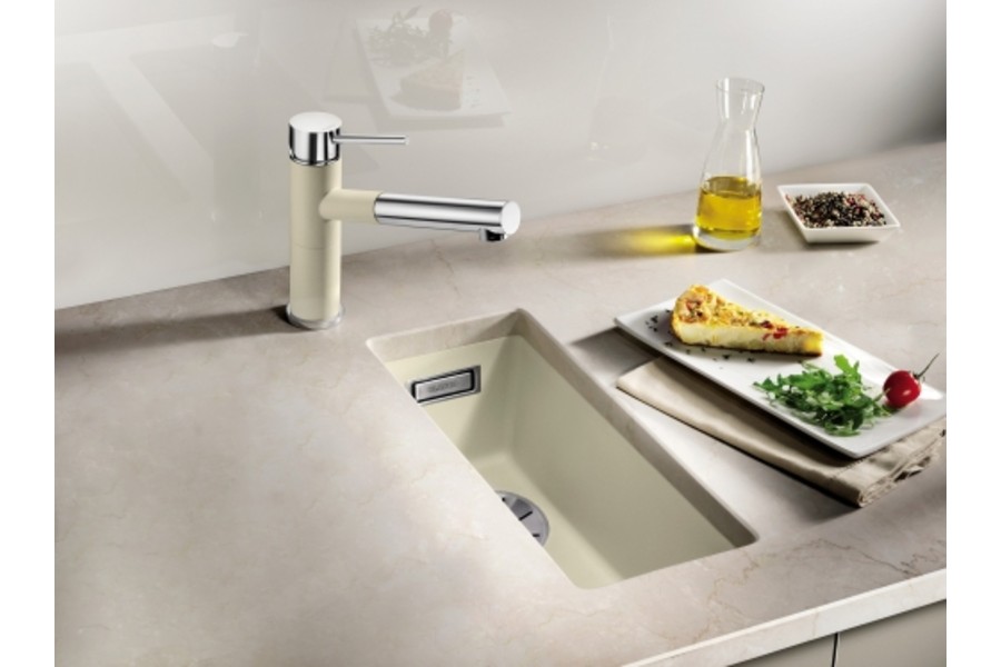 Елегантна мийка Subline 160-U виготовлена з натурального, зручного в експлуатації матеріалу SILGRANIT, що на 80% складається з гранітної крихти. Якщо встановити її в ряд з іншимичашами та функціональними аксесуарами, композиція дозволить ефективно організувати робоче місце. Завдяки новій технології встановлення монтаж під стільницю виконується легко та без додаткових зусиль. Максимальна місткість чаші забезпечує ергономічність та комфорт робочого процесу на кухні. Відвідна арматура InFino витончено інтегрована і проста у догляді.