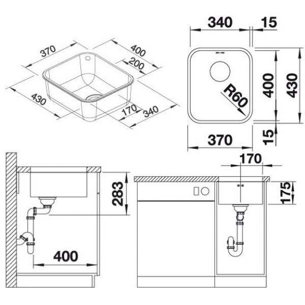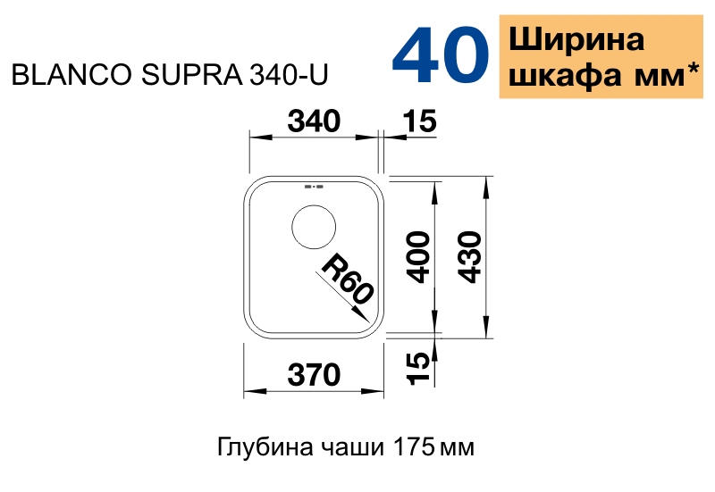 Мийка для кухні прямокутна Blanco Supra 340-U нержавіюча сталь полірована 518200