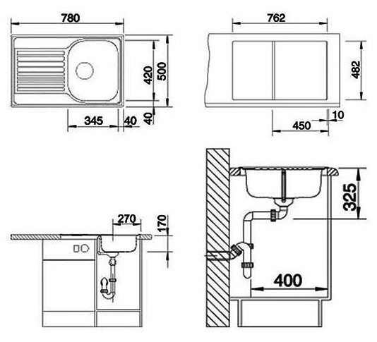 Мийка для кухні прямокутна Blanco Tipo 45 S Compact нержавіюча сталь полірована 513442