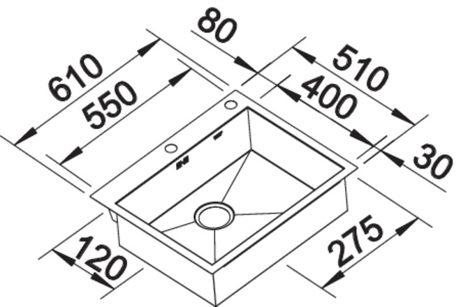 1) Мийка для кухні прямокутна BLANCO ZEROX 550-IF / А