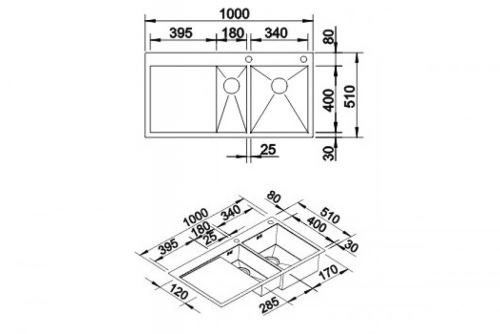 1) Мийка для кухні прямокутна BLANCO ZEROX 6 S-IF / А