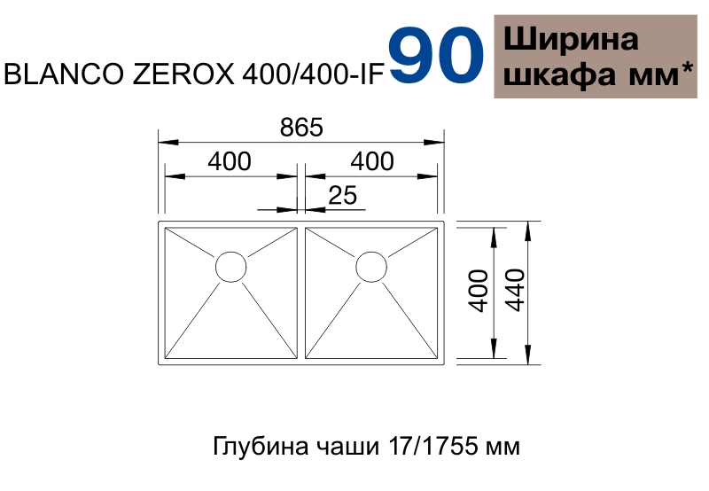 Мийка для кухні прямокутна Blanco ZEROX 400/400-IF нержавіюча сталь дзеркальна поліровка 521619