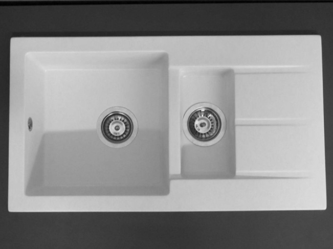 Композитний матеріал складається з поліефірної смоли і мінералів (кварц пісок, подрібнений мармур). Завдяки наповнювачів матеріал міцний, а завдяки смолі добре тримає форму. Масова співвідношення мінералів до смолі становить 70:30 +/- 5%. Для виробництва використовуються смоли, розроблені спеціально для виробництва санітарної продукції з низьким вмістом стиролу, стійкістю до дії ультрафіолету. Цикл виробництва передбачає постобработку виробленоїпродукції, яка дозволяє знизити в рази негативний вплив хімічних компонентів. Мийки прекрасно підходять для домашнього використання: ставте на неї гарячу сковорідку, нарізуйте на ній овочі та фрукти, мийте в ній посуд, іспользуйсте так, як заманеться. Вона прекрасно впорається з поставленим завданням!