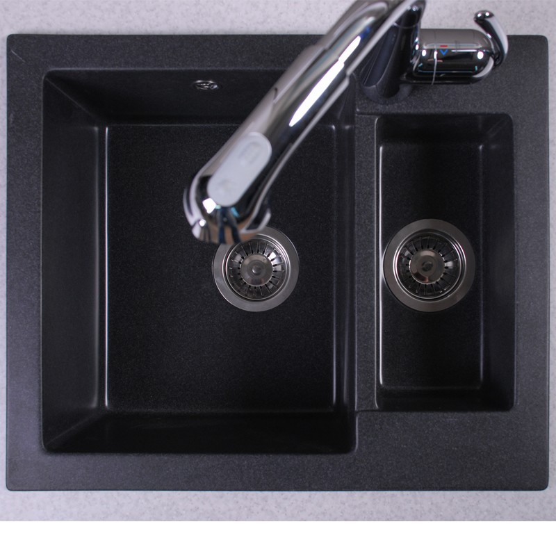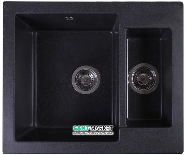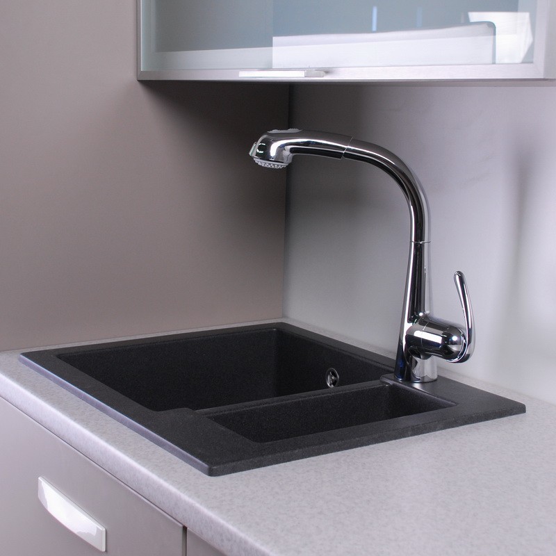 1) Мийка для кухні прямокутна Буль- Буль Arizona 60х50х21.5 обертаємося врізна Маграніт світло-чорний