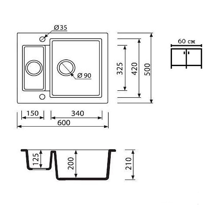 Мінімальна ширина шафи 60 см