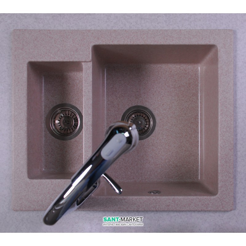 1) Мийка для кухні прямокутна Буль- Буль Arizona 60х50х21.5 обертаємося врізна Маграніт пісочний