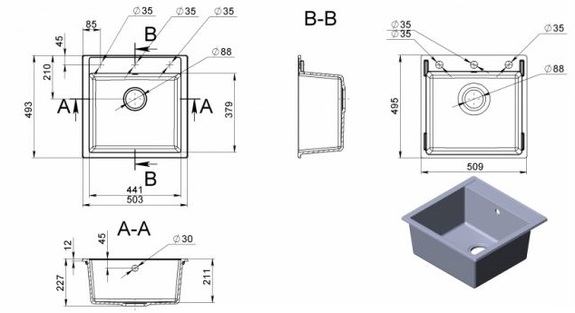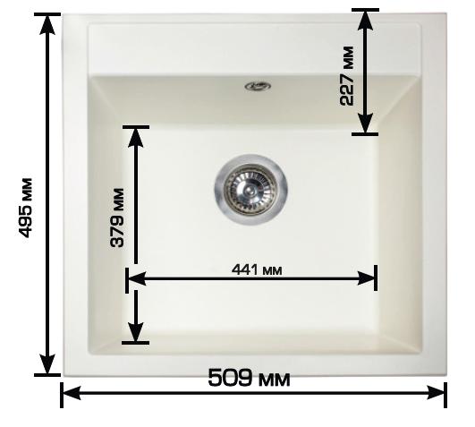 Гранітна мийка Bodrum 510 509х495х227 мм (116050001) колір білий