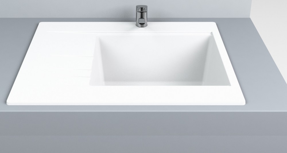 Композитний матеріал складається з поліефірної смоли і мінералів (кварц пісок, подрібнений мармур). Завдяки наповнювачів матеріал міцний, а завдяки смолі добре тримає форму. Масова співвідношення мінералів до смолі становить 70:30 +/- 5%. Для виробництва використовуються смоли, розроблені спеціально для виробництва санітарної продукції з низьким вмістом стиролу, стійкістю до дії ультрафіолету. Цикл виробництва передбачає постобработку виробленоїпродукції, яка дозволяє знизити в рази негативний вплив хімічних компонентів. Мийки прекрасно підходять для домашнього використання: ставте на неї гарячу сковорідку, нарізуйте на ній овочі та фрукти, мийте в ній посуд, іспользуйсте так, як заманеться. Вона прекрасно впорається з поставленим завданням!