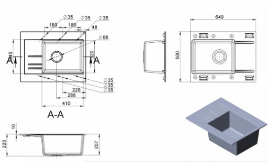 Комплектація: кухонна мийка, керівництво користувача,монтажний кронштейн