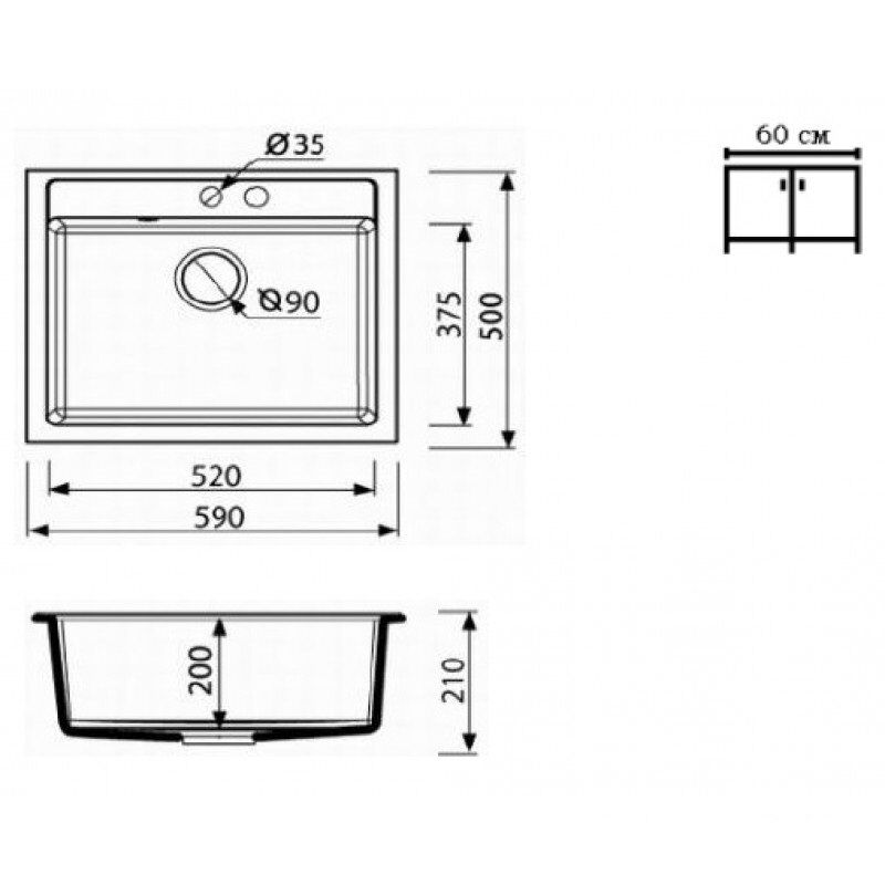 Гранітна мийка Oregon 590х500х210 мм (108060001) колір білий
