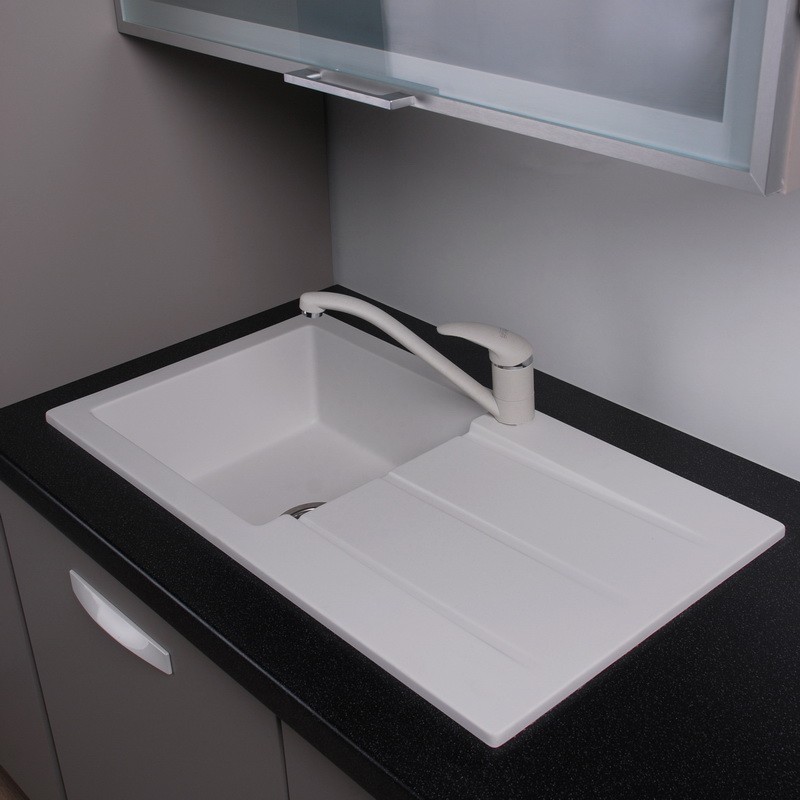 1) Мийка для кухні прямокутна Буль-Буль Tennessee врізна Маграніт білий