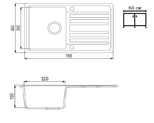 Гранітна мийка Versal 765х460х190 мм (109070004) колір світло-чорний