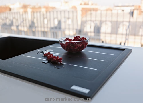 Стильна мийка для кухні, для установки поверх стільниці. Модель має строгий мінімалістичний дизайн та ергономічні пропорції для зручного та безпечного використання. У комплекті з мийкою постачаються автоматичний вентиль із квадратним клапаном, миска для сушіння та обробна дошка із загартованого скла.
