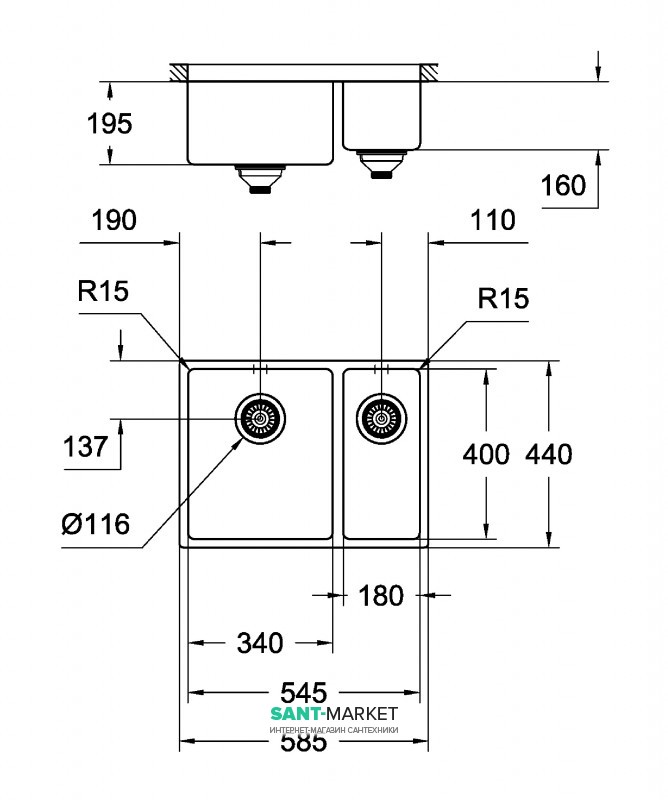 модель: K700U 60-S 58.5/44 1.5 lh тип монтажу: під стільницю матеріал: нержавіюча сталь AISI 304 (V2A) GROHE StarLight хромована поверхня покриття: сатинове GROHE Whisper мінімальний розмір шафи: 48 мм чаша: 340 x 400 x 195 мм 0.5 чаші: 180 x 400 x 140 мм GROHE QuickFix швидка монтажна система миття монтується зліва необхідний розмір отвору в стільниці для встановлення мийки: 545 x 400 мм (R15) мм аксесуари увімкн.: зливний гарнітур, кошик, монтажний набір.