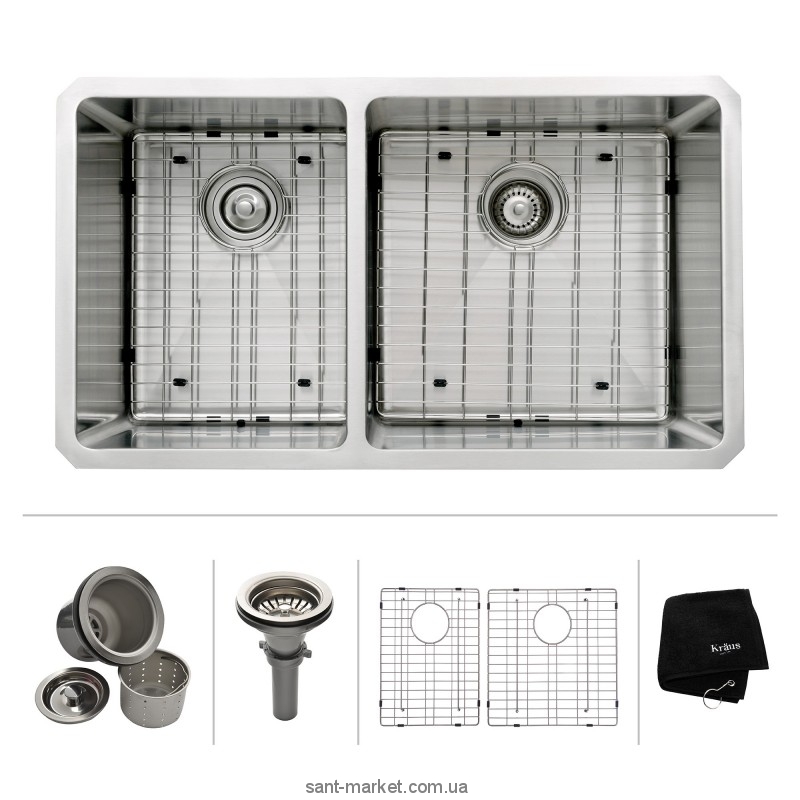 Глибока кухонна мийка від відомого американського виробника Kraus підніме рівень функціональності кухні. Kraus KHU104-33 – унікальна двосекційна раковина, зроблена вручну. Миття виконане з нержавіючої сталі товщиною 1.5 мм. Довжина мушлі 832 мм, а висота 254 мм. Дно раковини має рельєфну форму для більш швидкого та комфортного зливу води. Зливний сифон зі знімним кошикомсміття можна легко почистити.