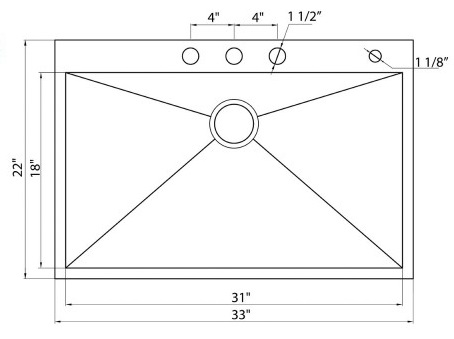 - Мийка спроектована з чотирма попередньо просвердленими отворами для легкоїустановки двохвентильні кухонного крана (на три настановних отвори) і дозатора миючого засобу.