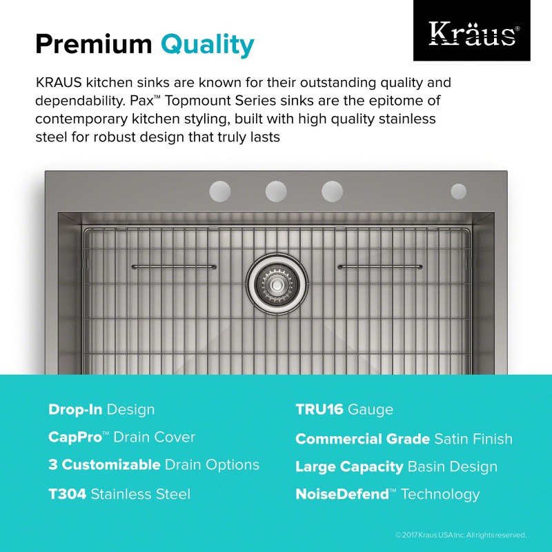Мийка для кухні прямокутна Kraus Pax накладна нержавіюча сталь хром KP1TS33S-4