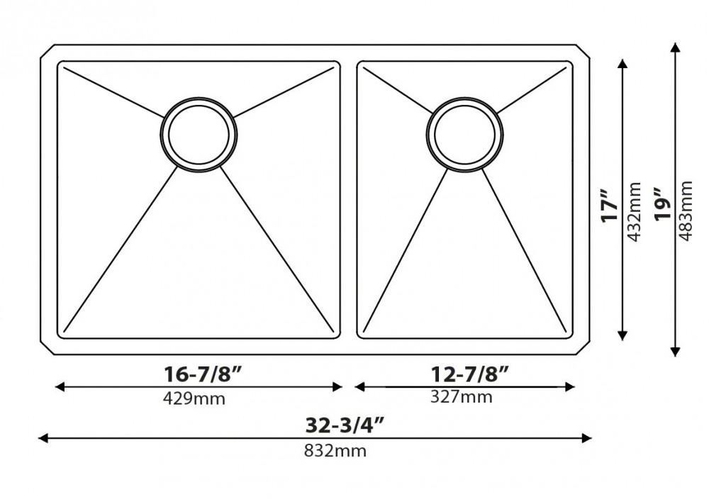 - Дизайн екстраглибокої чаші з м'яко закругленими кутами забезпечує зручність при експлуатації та обслуговуванні