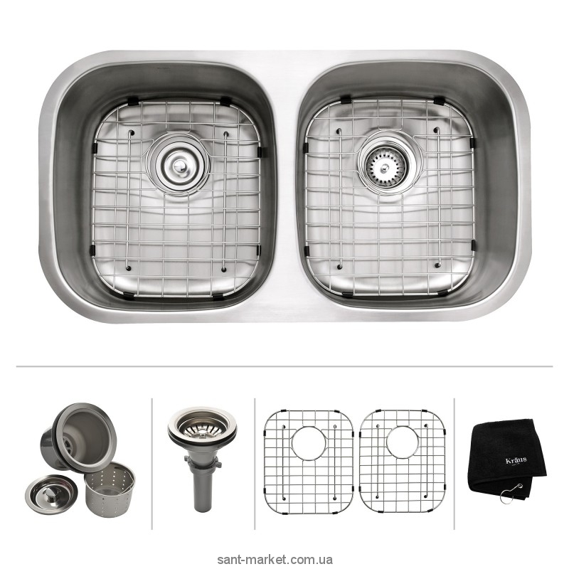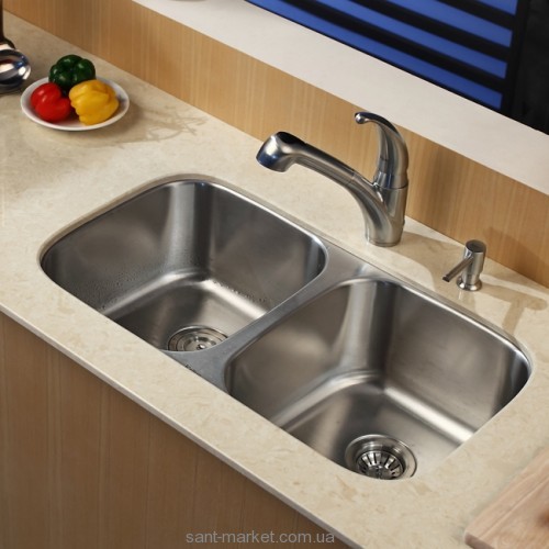 Мийка кухонна KBU22 від американської компанії Kraus складається з двох рівноцінних за розміромчаш із сатиново-матовим, стійким до подряпин покриттям. Сантехніка монтується під стільницю кухні, має дуже скромні розміри та займе на стільниці менше одного метра. Невеликий розмір бортиків дозволяє вдало вписати виріб в будь-яке зручне для користувача місце. При цьому обидві чаші мийки вміщують досить габаритний посуд, а їхня значна глибина захищає користувача від розбризкування води в процесі миття. Товщина нержавіючої сталі кожної з чаш становить 1,5 мм. Матеріал преміум класу стійкий до найрізноманітніших фізичних та хімічних впливів. Зовнішня сторона обклеєна антишумовим покриттям, що поглинає звуки води, що ллється і поміщається в миття посуду. У комплектвироби входять сучасні сифони, що затримують харчові відходи, донні водяні фільтри також з якісної нержавіючої сталі, сітки для захисту дна чаш мийки. Для зручності установки виробник також включив у комплект настановні кронштейни та вирізне лекало. Вдалим подарунком доповненням до вашої покупки стане фірмовий кухонний рушник Kraus.