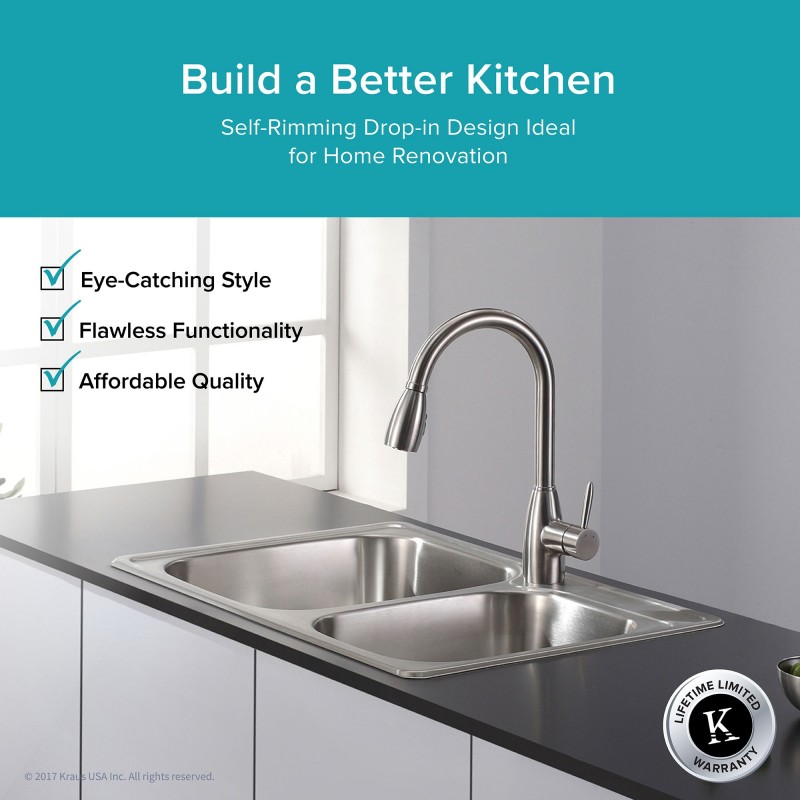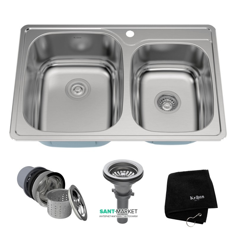 Раковини з нержавіючої сталі Kraus Premier topmount підійдуть для будь-якої кухні. Вони виконані з високоякісної нержавіючої сталі (співвідношення хром-нікель 18:10), що забезпечує їм максимальний термін експлуатації. Глибокі чаші (228 мм) здатні вмістити велику кількість посуду. Усі кухонні раковини Kraus оснащені звукоізоляцією найвищого рівня. Кожна мийка додатково обробляється захисним покриттям Stone Guard, що запобігає утворенню конденсату і забезпечує додаткову звукоізоляцію. Поверхня захищена від іржі та окиснення ретельним процесом обробки. Атласне оздоблення тазакруглені кути комерційної якості роблять технічне обслуговування простим, як протирання поверхні вологою тканиною. Ця раковина сумісна з будь-яким дизайном, що робить її ідеальною під час ремоделювання кухні. Для додаткової зручності в комплектацію включені донний фільтр з нержавіючої сталі, що запобігає засміченню водостічної труби залишками продуктів харчування, та кухонний рушник. Для встановлення передбачені всі кріпильні пристрої. Відчуйте якість Kraus та втілюйте свої найкращі ідеї на кухні разом із мийкою Kraus KTM32 серії Premier Topmount.