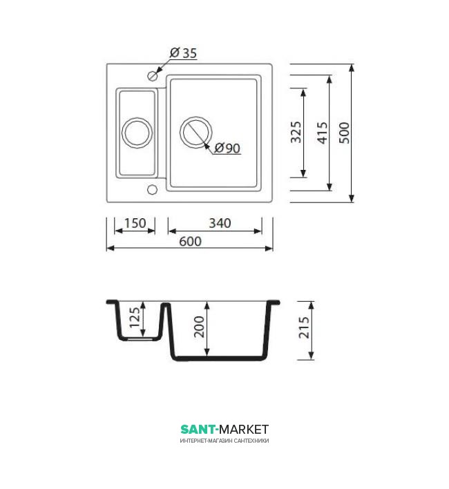 - Розміри чаші: 150x325x125мм, 340х420х200 мм