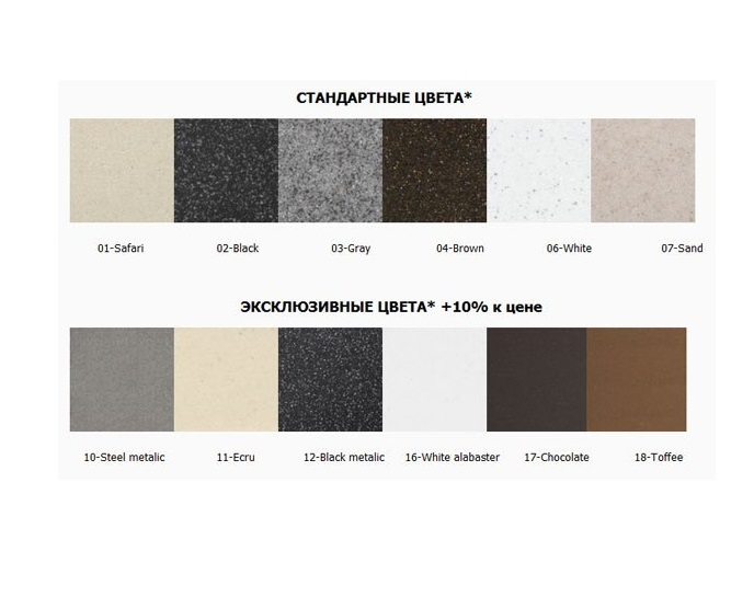 - мийка Bario доступна в будь-якому з кольорів наданих на панелі, на ексклюзивні кольори йде націнка до вартості на 10%