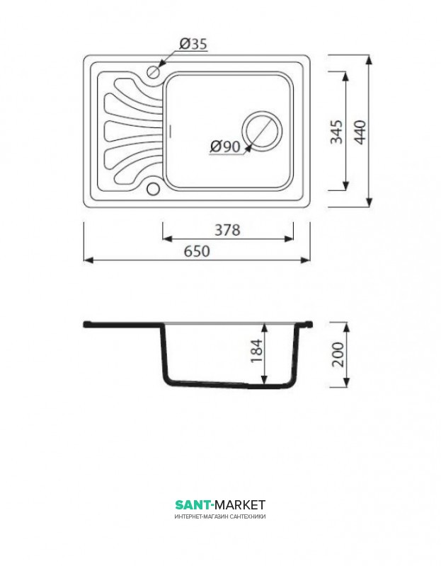 Мийка для кухні прямокутна Marmorin Dato штучний камінь пісочний 240 113 007