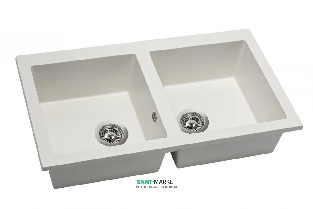 Мийка для кухні прямокутна подвійна Буль-Буль Westeros врізна Маграніт білий 111080001