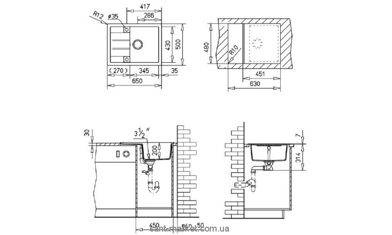 Миття складається з двох чаш: основної та додаткової для стікання води з фруктів, при розморожуванні продуктів. Крім чаш є допоміжна площа, вода з якої стікає у маленьку чашу. Конструкція цільнолита виконана з композитного матеріалу теграніт. Вода м'яко падає на поверхню, не створюючи шуму і не утворюючи наліт.
