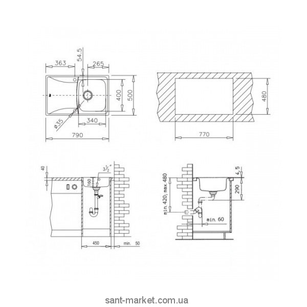 Мийка для кухні прямокутна Teka Basico 79 1B 1D обертається крило врізна нержавіюча сталь хром матова 10124019